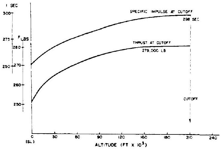 Thrust levels for first-stage booster engines, which start at or near sea-level altitude and stop at a specified higher altitude, are usually quoted for sea-level conditions. Additionally, the specifications may contain information on thrust level at altitudes above sea level, frequently in the form of a graph (see fig. 2-1).
