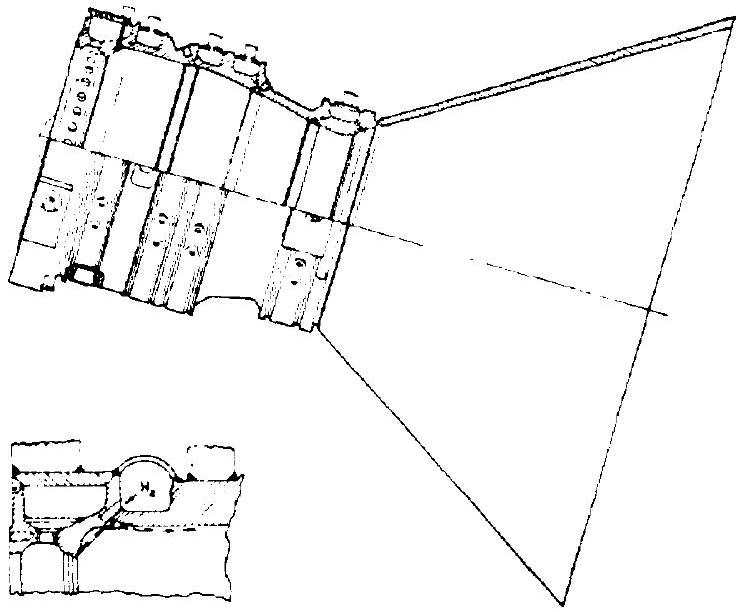 The dump cooling technique may be particularly effective for applications in hydrogenfueled, low-pressure systems ( ), or for nozzle extensions of high-pressure hydrogen systems. A small amount of the total hydrogen flow is diverted from the main fuel feed line, fed through cooling passages and ejected. The heat transfer mechanism is similar to that of regenerative cooling. The coolant, however, becomes superheated as it flows toward the nozzle exit, where it is expanded overboard at reasonably high temperatures and velocities, thus contributing some thrust. Application of dump cooling is often limited, however, by various technical difficulties, such as discharge nozzle design at low coolant flow rates.