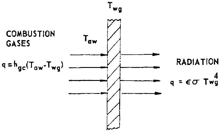 adiabatic wall temperature of the gas, deg R -side wall temperature = bulk wall temperature, deg R total emissivity of outer wall surface Stefan-Boltzmann radiation heat transfer constant, The design approach to radiation cooling is to determine a value which will satisfy both equation (4-38) and the structural capability of the wall material used under operational conditions.