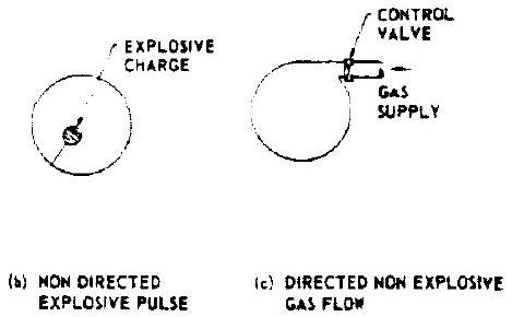 - Directed nonexplosive gas flows.-In this method, as shown in figure 4-68c, a flow of gas from a regulated high-pressure source is controlled by a fast-acting valve. This valve is placed as near to the chamber as possible. This method additionally permits a better definition of the parameters associated with the disturbance.