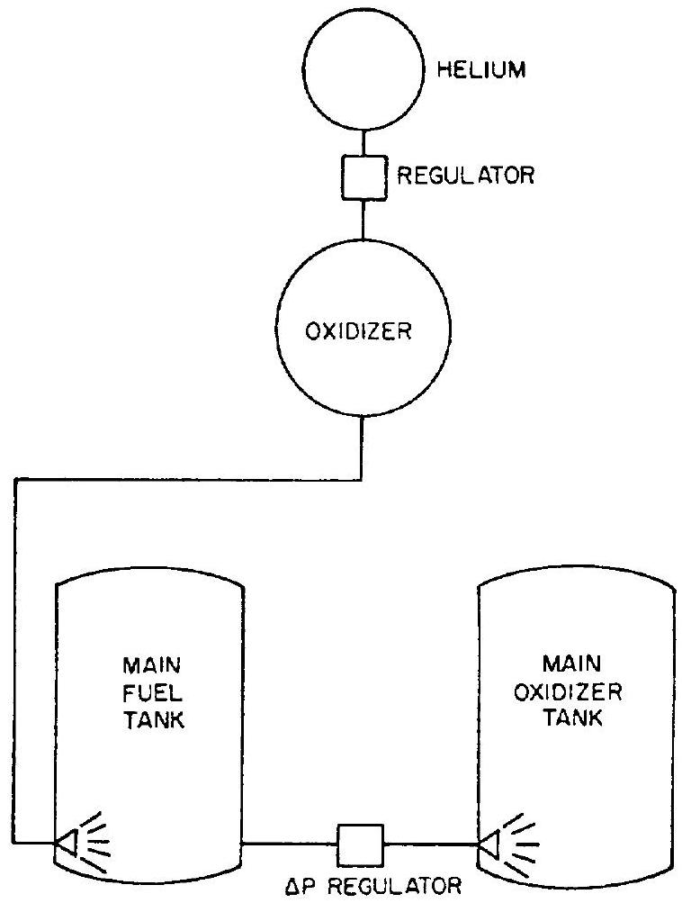 Single liquid propellant gas generator-helium (fig. 5-14)Helium. hydrazineb{ }^{b} Helium at 1000R1000^{\circ} \mathrm{R} on oxidizer, hydrazine products at 1200R1200^{\circ} \mathrm{R} on fuel1146351