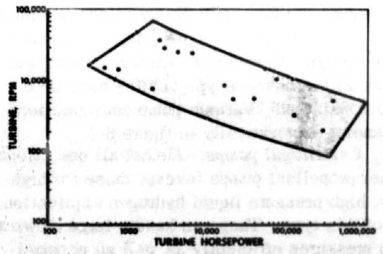 Figure 6-3.-Envelope of rocket engine turbine designs.