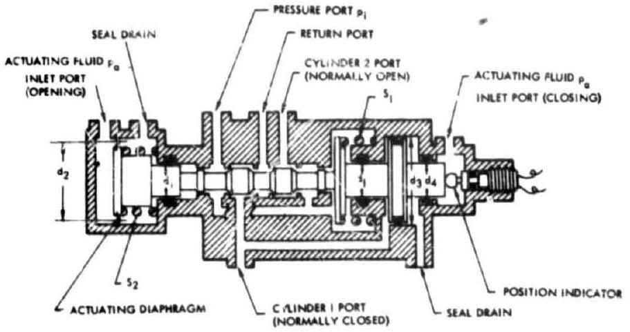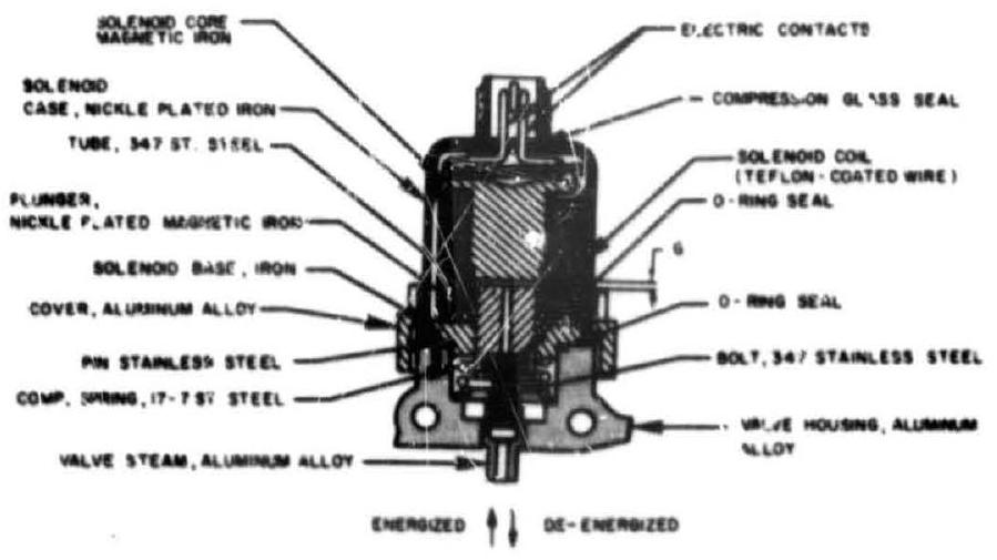 actuate other fluid-flow-control components, such as propellant valves, or to control engine sequence events, such as the admission of igniter fuel. There is a great variety of control pilot valves available for liquid propellant rocket engine services. Basically, they can be grouped into two categories: the on-off type and the proportional type. We confine our discussion here to the on-off type. Since the proportional-type pilot valves are used widely in closed-loop cortrol systems, they will be treated as regulating devices, and discussed in section 7.11. Proportional-type pilot valves are also known as servo valves.