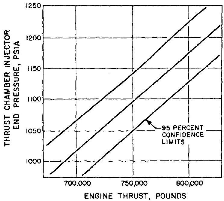 In addition to tables for nominal engine performance parameters, nominal engine performance graphs such as chamber pressure versus engine thrust, and engine specific impulse versus engine thrust, are often included as additional monitoring aid. Figure 10-7 presents a typical performance graph for the A-1 stage engine system, of chamber pressure versus engine thrust at sea level.