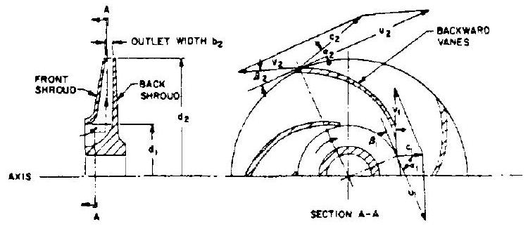 After the vane angles and other dimensions at inlet and discharge have been established, no set rule is available for designing the backward curved vanes. However, the number of vanes is usually between 5 and 12, and may be determined empirically by