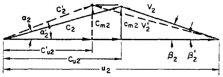 cu2=u2cm2tanβ2\begin{equation*} c_{u_{2}}^{\prime}=u_{2}-\frac{c_{m_{2}}}{\tan \beta_{2}^{\prime}} \tag{6-33} \end{equation*}