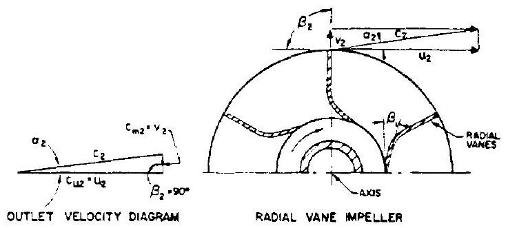 Figure 6-36.-Typical radial vane impeller and its outlet velocity diagram.